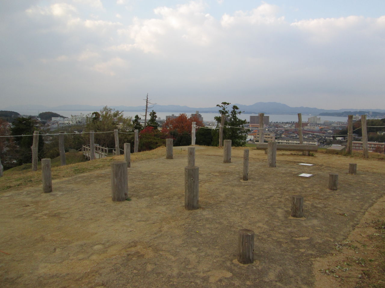 松江市立病院の隣にある丘で、形としては環濠集落だが、竪穴住居は環濠の外にあったら