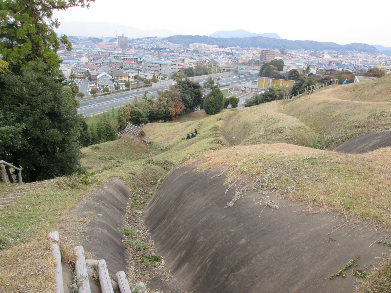 市街地の真ん中に古代遺跡。丘に三重の堀を掘ってめぐらしている。