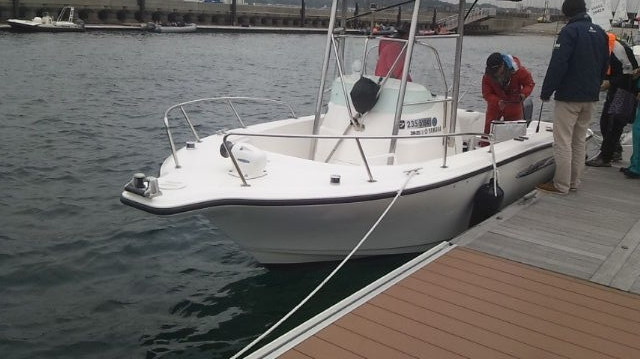 曇り空の下、常連仲間の一人が借りてくれたプレジャーボートでいざ出発。