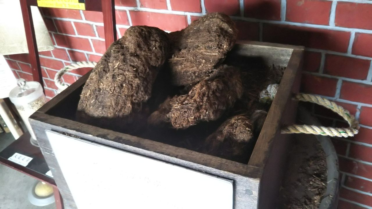 展示のなかにピートがあって触ることが出来たので持ち上げてみたが随分軽かった。