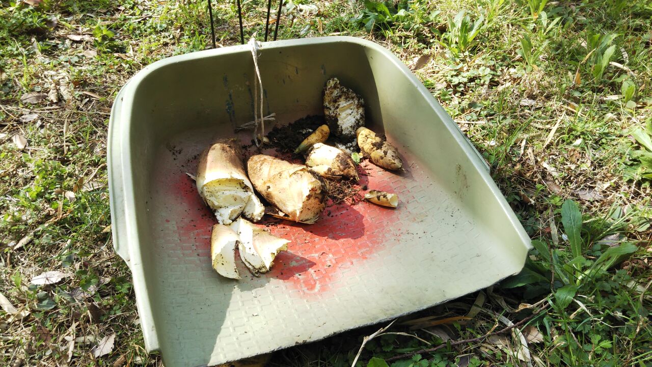 残った根から出てきた芽が大きくなって銀杏らしくなってきた。