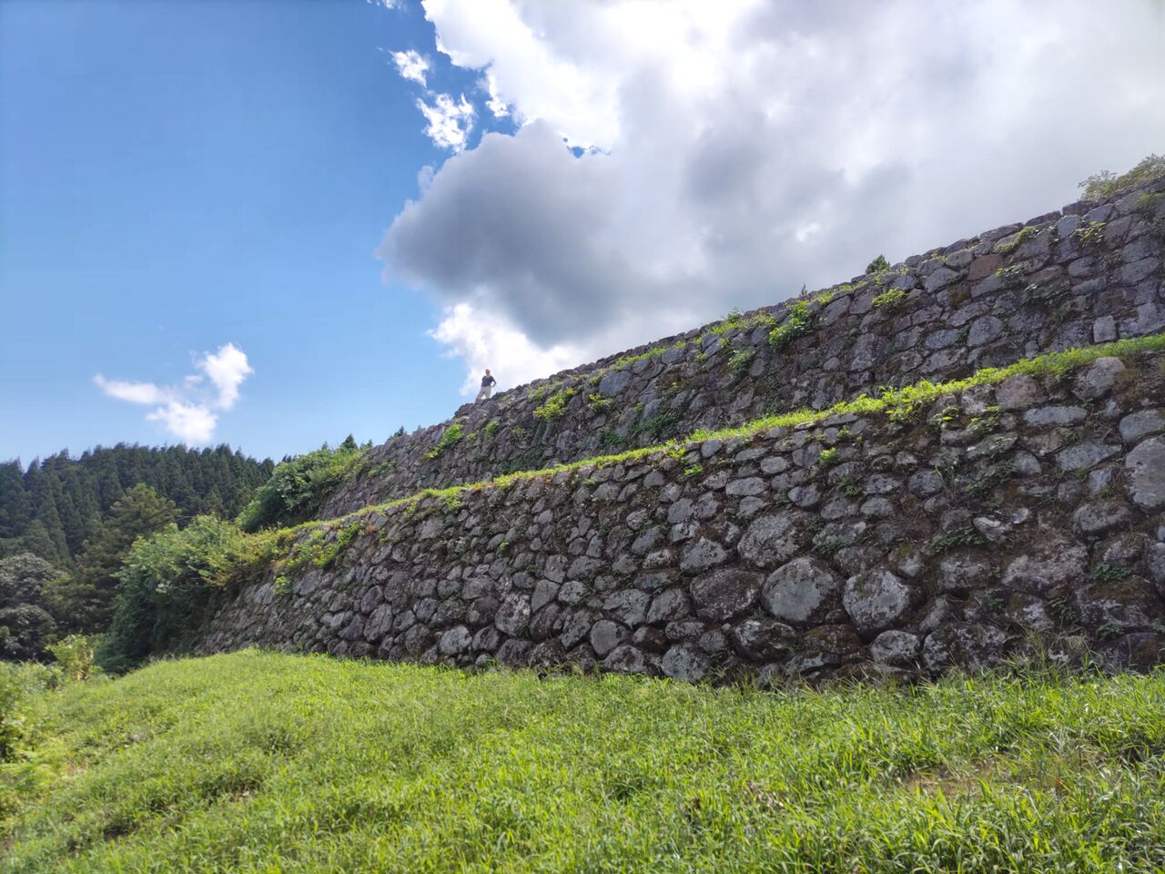 ガイドさんの説明を聞きながら少し歩くと石垣が見えてきた。