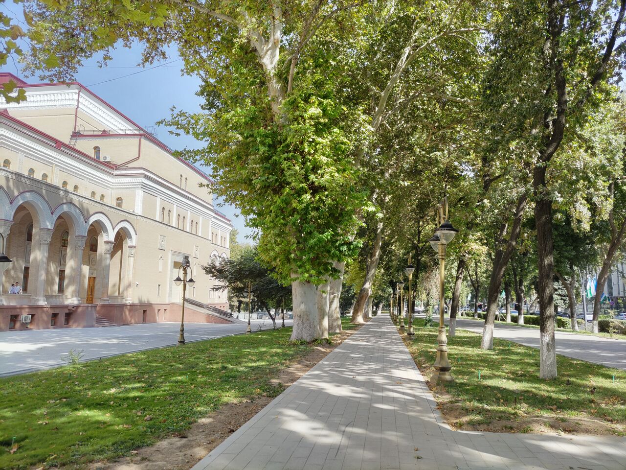 ナヴォイ劇場の横の鈴懸の道 タシケントもサマルカンドも胡桃と鈴懸が多い
